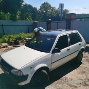 тойота старлет в принципе не в плохом состоянии , на ровных доках , мотор после капиталки, инжектор, каробка 1,3 бенз нюхает, двери закрываются с ключа, есть магнитола с аукс.