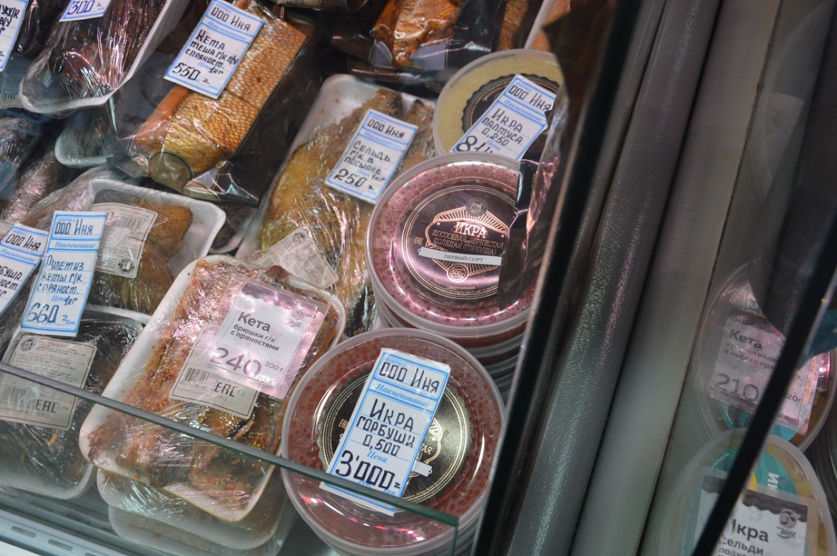 – 6-7 тыс рублей за литр икры сегодня – нормально. А то, что те на улице продают, за 3 тыс, ну подумайте сами, они стоят на открытом воздухе, еще тепло, у них нет ни холодильников, ничего. Это просто желатиновая подделка. Покупателей обманывают, – пояснила продавец Лариса. Также стоит отметить, что несмотря на «рыбность» края, не везде рыбу можно приобрести. Например, на рынках на ул. Зеленой и Шевчука она практически отсутствует. Ее просто нет.