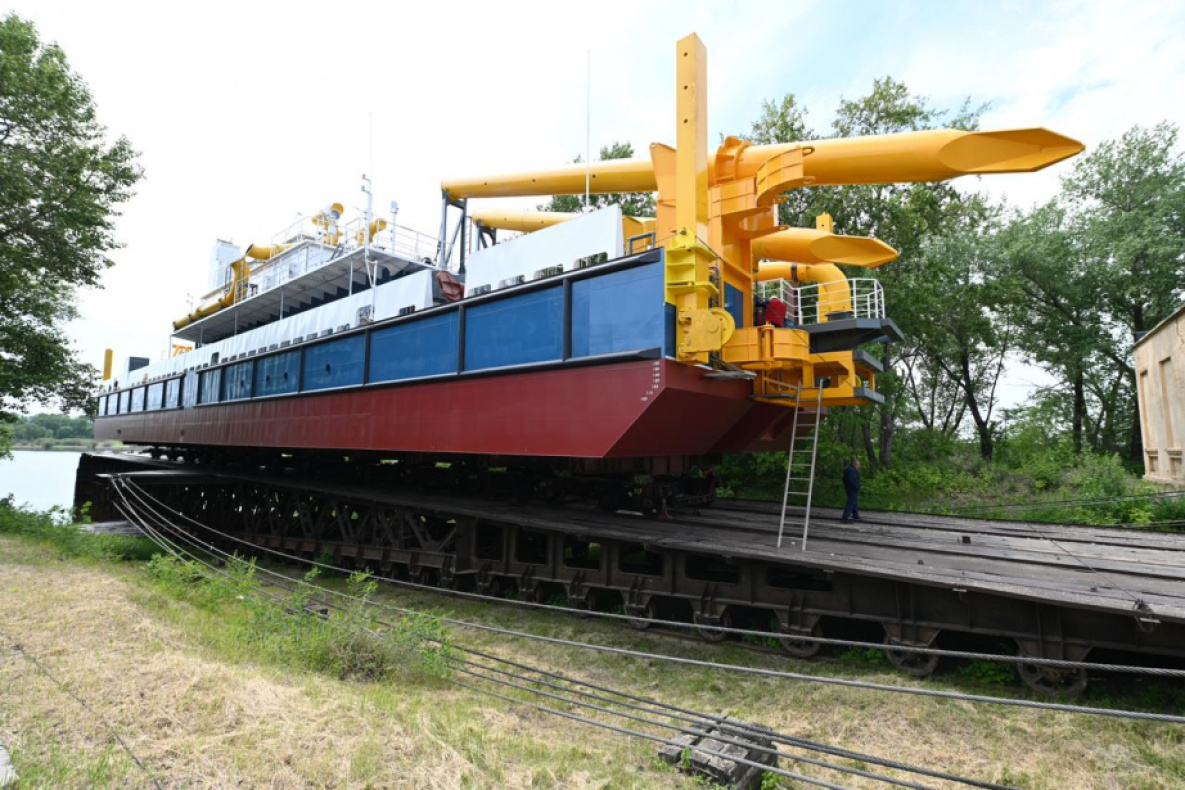 Хабаровские корабелы спустили на воду земснаряд «Амурский-203»