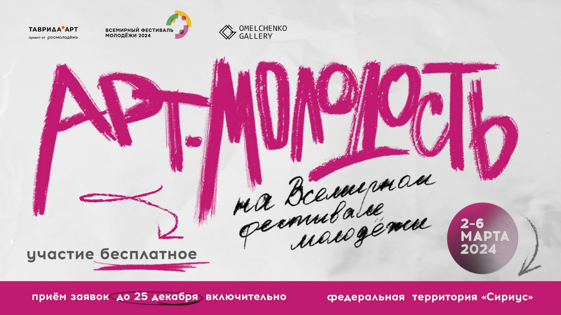 Отбор заявок открыт до 25 декабря через телеграм чат-бот @artmolodost_show_bot.