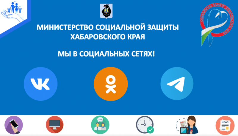 Напоминаем, что министерство социальной защиты Хабаровского края ведет социальные сети: "Вконтакте", "Одноклассники" и мессенджер "Телеграмм".