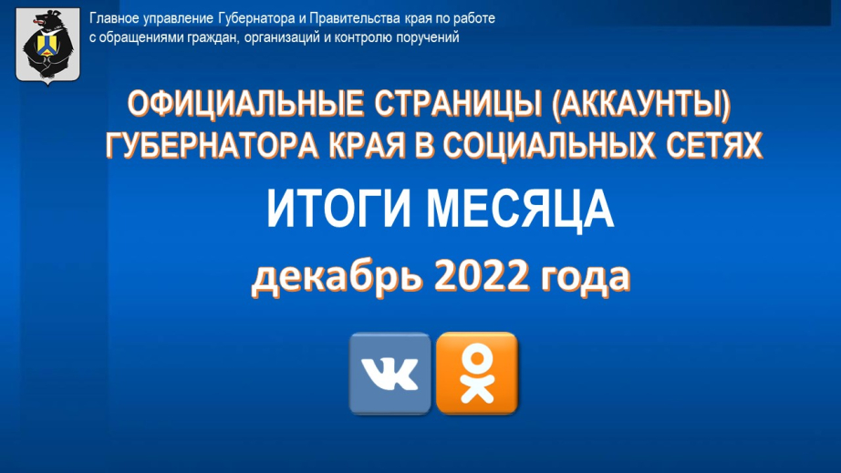 Официальные страницы (аккаунты) Губернатора края в социальных сетях. Итоги месяца