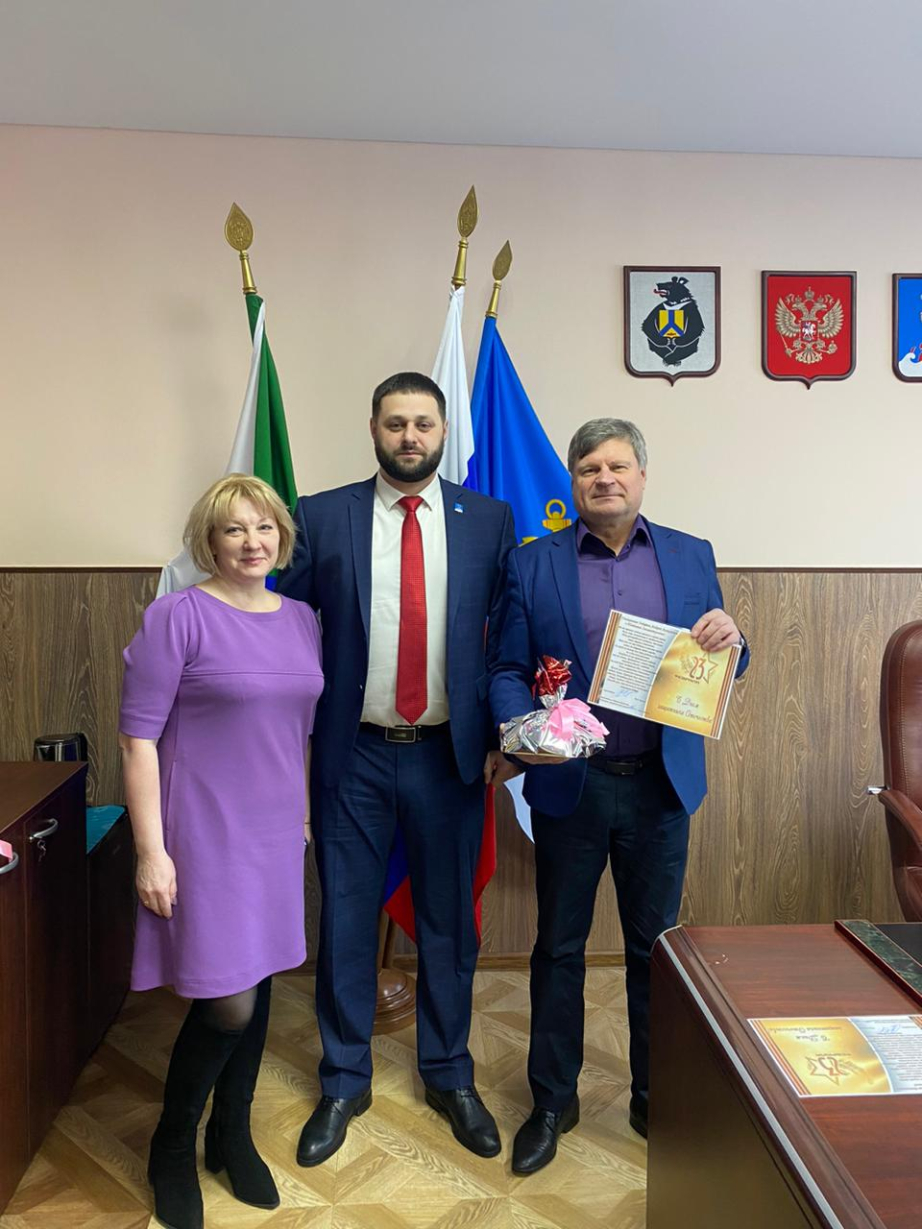 С пожеланиями мира, счастья и благополучия, их поздравили глава района Максим Климов и председатель Собрания депутатов района Наталья Фомина.