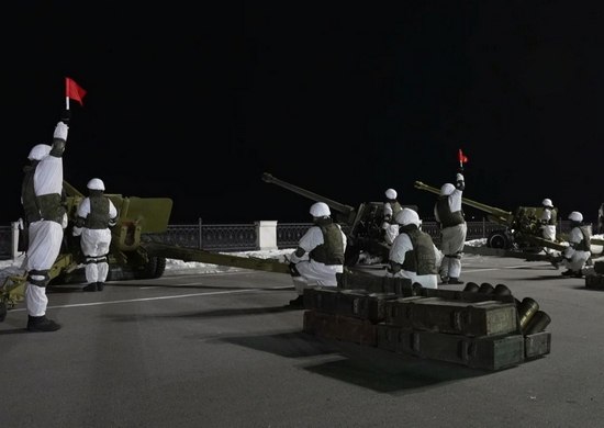 Артиллеристы ВВО выполнили по 30 залпов из орудий и салютных пусковых установок в Хабаровске, Белогорске, Владивостоке, Уссурийске, Чите, Улан-Удэ 23 февраля в 21:00 час по местному времени.