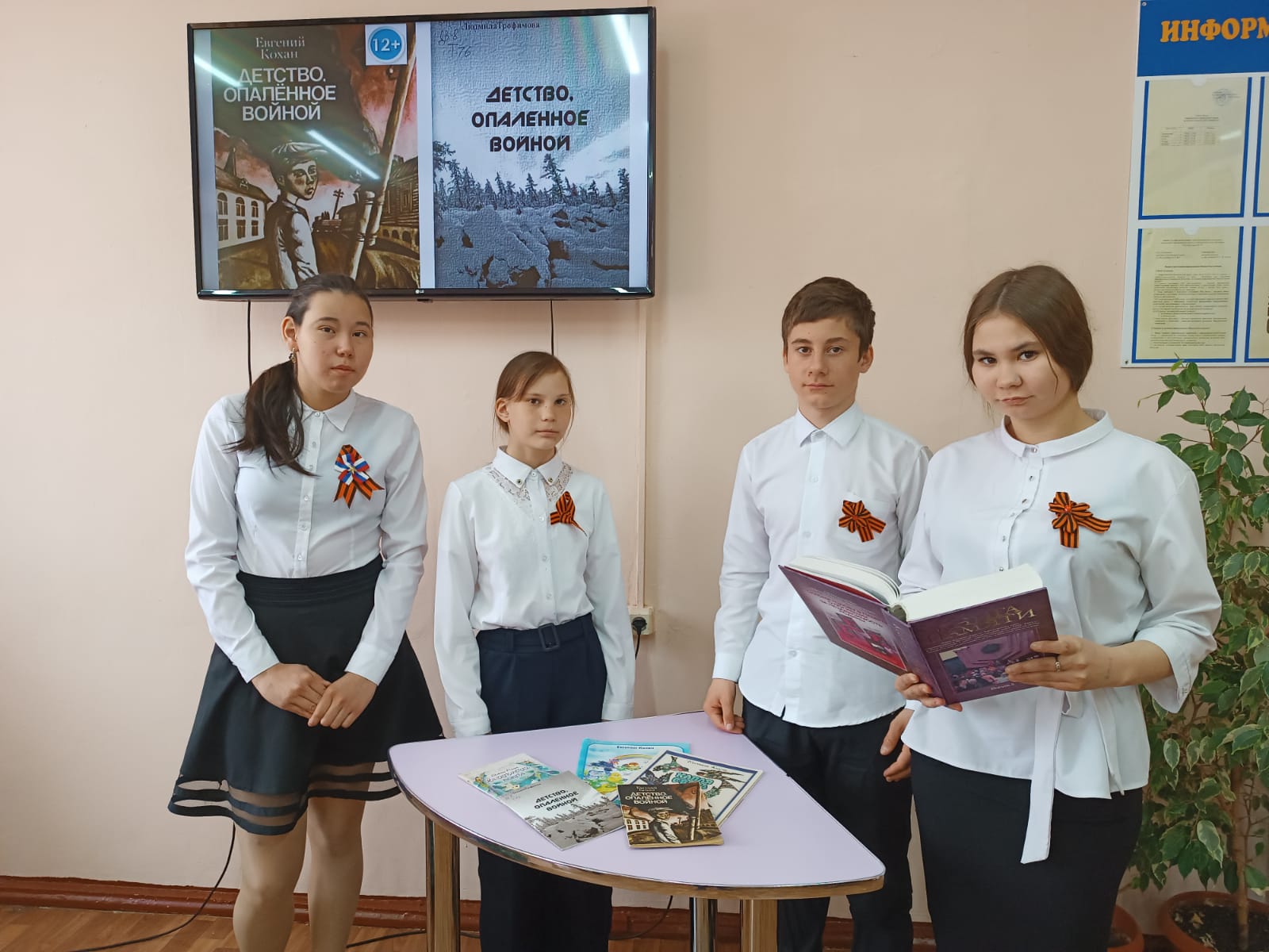 Вторая книга представленная ребятам тоже носит название «Детство, опаленное войной» . Ее автор наша землячка Людмила Георгиевна Трофимова.