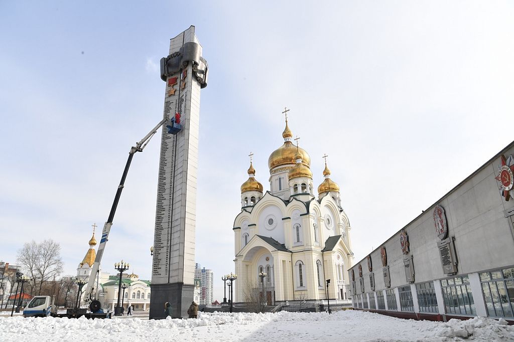 Имена героев России, погибших в СВО, наносят на обелиск Славы в Хабаровске