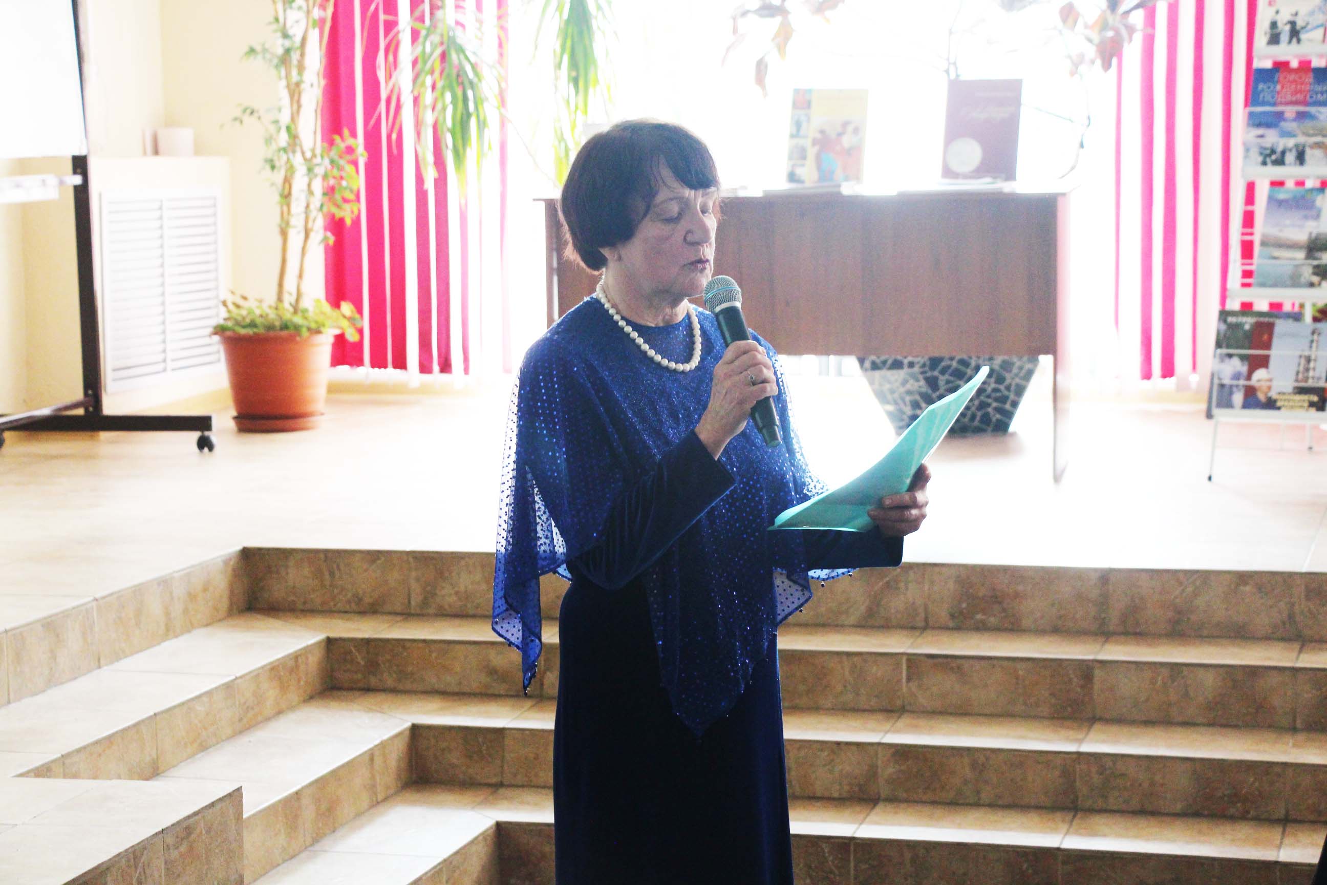 Чтение стихов посвященных городу в исполнении дочери первостроителя Болоневой Г.В. «Над проспектом Мира лиственницы в ряд» (стих. А. Кухтиной) и стихи собственного сочинения «Город Юности нашей» и «Моей России ориентир» Матвеева В.В. почетного председателя регионального отделения Союза пенсионеров РФ были близки и понятны для всех.