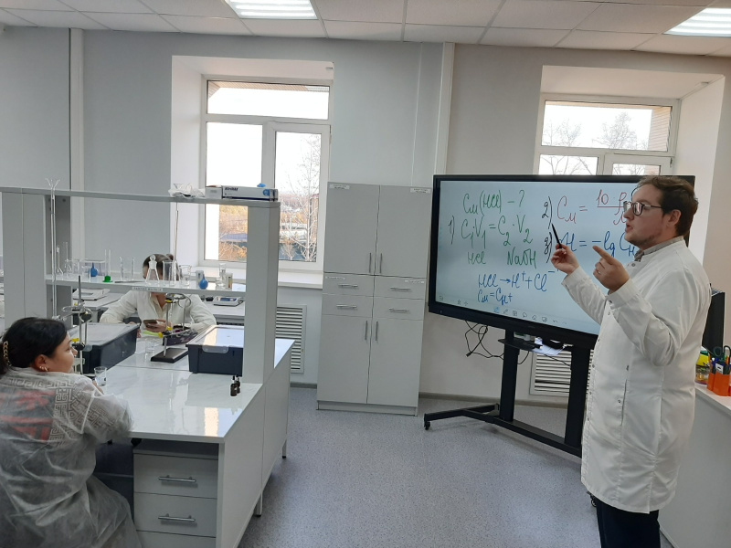 Практическая часть курсовой подготовки проведена на базе Регионального центра выявления, поддержки и развития способностей и талантов у детей и молодежи в Хабаровском крае «Сириус 27». Слушатели ознакомились с оснащением лаборатории, выполнили 2 практические работы. В ходе практикума педагоги освоили технику выполнения титриметрического анализа, провели титриметрический анализ хлорида натрия и гидроксида натрия при их совместном присутствии, повторили алгоритмы решения задач по химии.