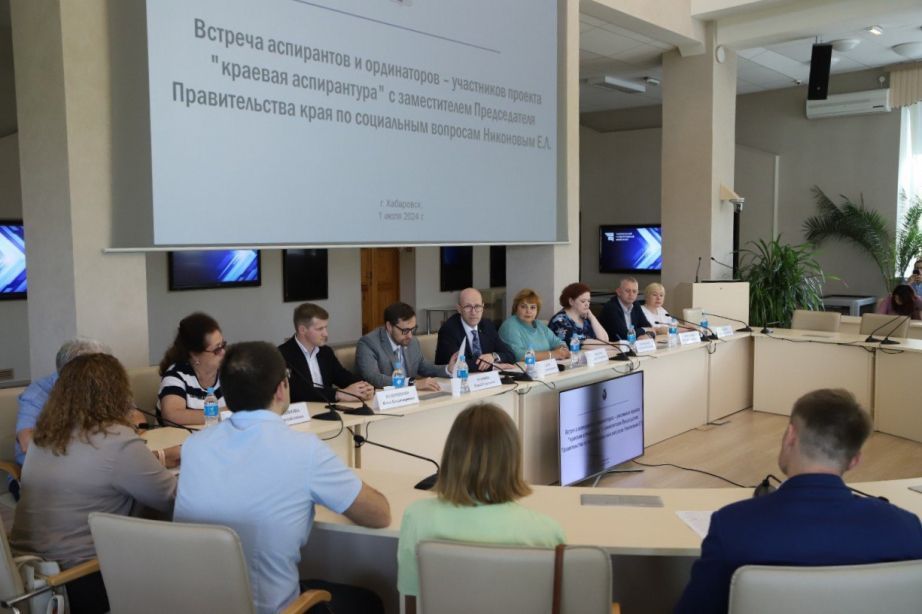 Зампред обсудил с аспирантами и ординаторами вопросы поддержки и развития прикладной науки. Напомним, для этого с 2022 года в Хабаровском крае реализуется проект «Краевая аспирантура». Из краевого бюджета научным и образовательным организациям предоставляются гранты на обучение по программам аспирантуры и ординатуры.