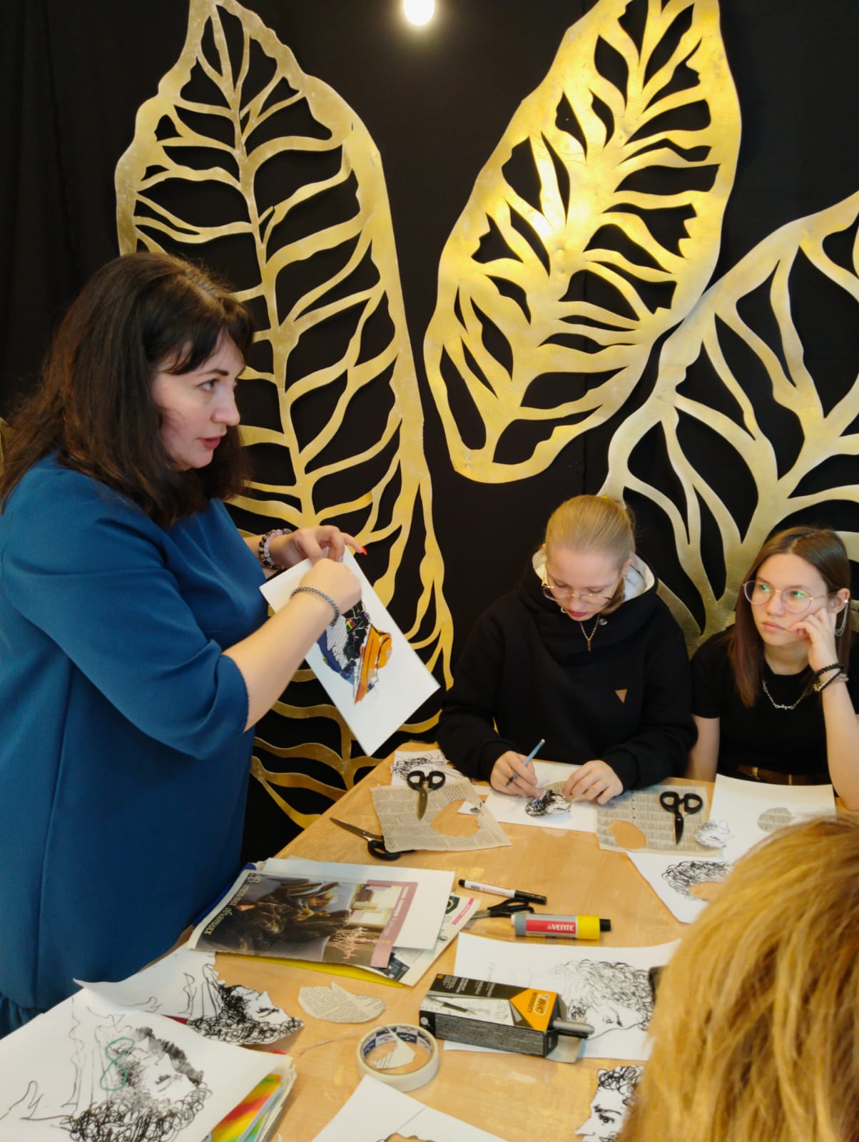 Пушкин – гениальный творец, лидер, острослов и юморист. О смешных случаях из жизни поэта, его колких эпиграммах, анекдотах Даниила Хармса рассказала Марина Евстифеева. Вдохновленные участники мастерской под руководством Галины Геннадьевны Захаровой попробовали немного «оживить» Пушкина, воссоздать его образ как будто он самый обычный парень. Всем выдали яркие издания, старые газеты, клей-карандаш, бумажного Александра Сергеевича и сказали творить.