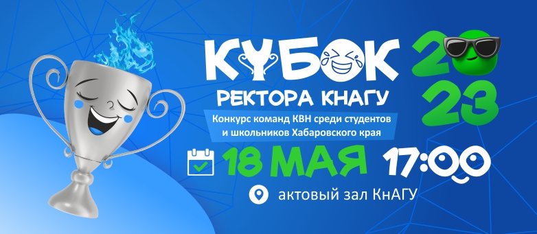18 мая в 17:00 в актовом зале КнАГУ (Ленина 27, ауд.313/3) состоится конкурс команд КВН среди студентов и школьников Хабаровского края «Кубок ректора КнАГУ-2023» .