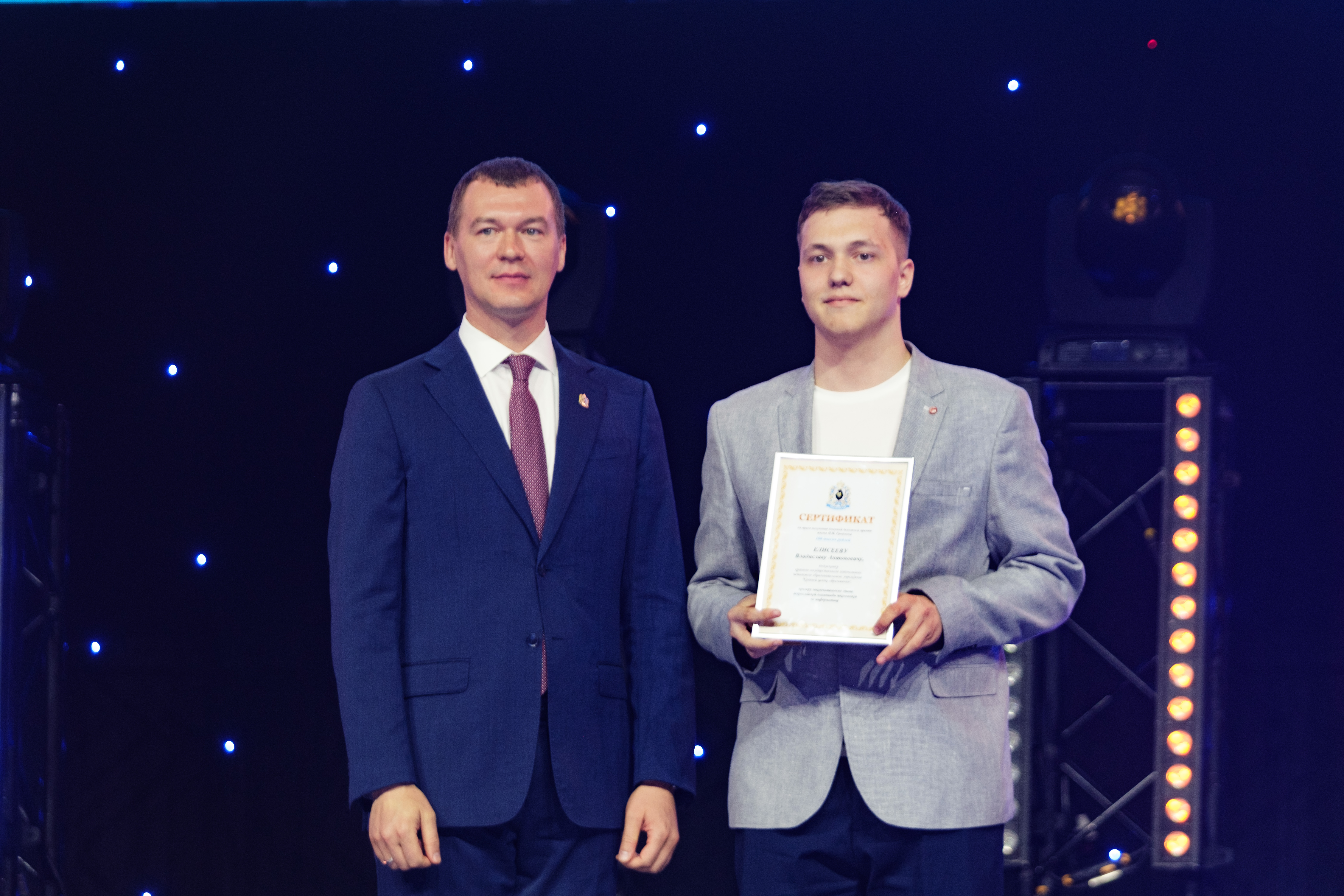 «Более 5 тысяч выпускников Хабаровского края получают в этом году аттестат – путевку во взрослую жизнь. Как подчеркивает президент России Владимир Путин, именно вам, сегодняшним выпускникам, предстоит творить и создавать будущую историю России, совершать значимые открытия, ставить новые рекорды, вдохновлять других своими достижениями. Вы молоды, амбициозны, полны сил и энергии, стоите на пороге новой жизни, перед вами открыты множество дорог и еще больше возможностей. Очень важно, чтобы каждый из вас смог найти собственный путь, заниматься тем, что вам действительно по душе, приносить пользу краю и всей России», – поздравил выпускников Михаил Дегтярев.