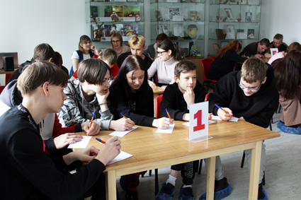 Это уже второе мероприятие, посвящённое Году педагога и наставника, проведённое библиотекарями для старшеклассников. Неформальная обстановка, возможность рассмотреть иллюстрации художников об учениках и школе, совместные решения весёлых задачек, творческие задания не оставляют никого равнодушными и, надеемся, надолго запомнятся ребятам.