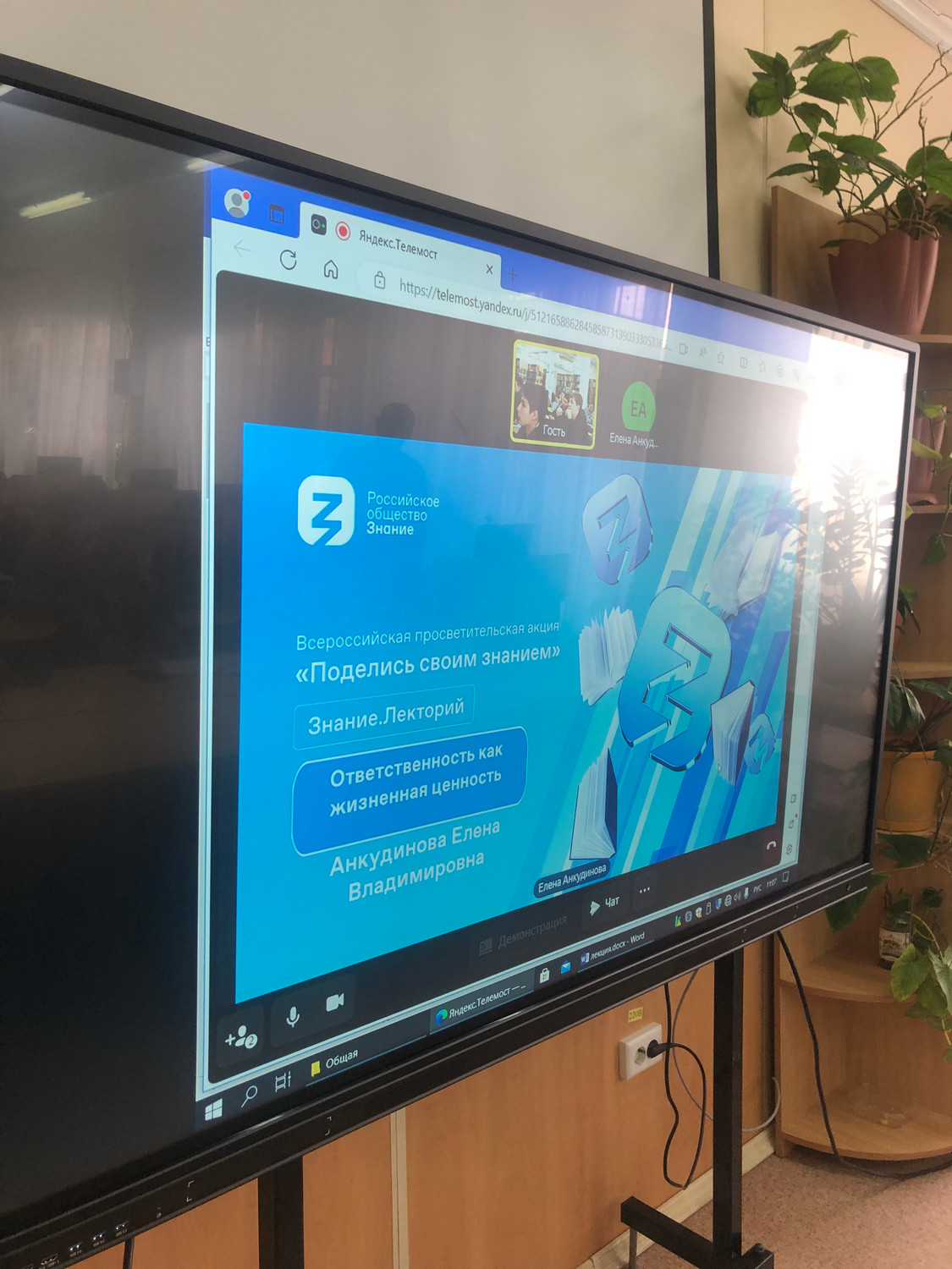 Техникум присоединился к Всероссийской просветительской акции «Поделись своим знанием» российского общества «Знание». Студенты групп 103-ТЭО и 114-ЭЛ послушали онлайн лекцию «Ответственность как жизненная ценность» Анкудиновой Елены Владимировны, лектора общества «Знание», преподавателя Амурского гуманитарно-педагогического государственного университета.