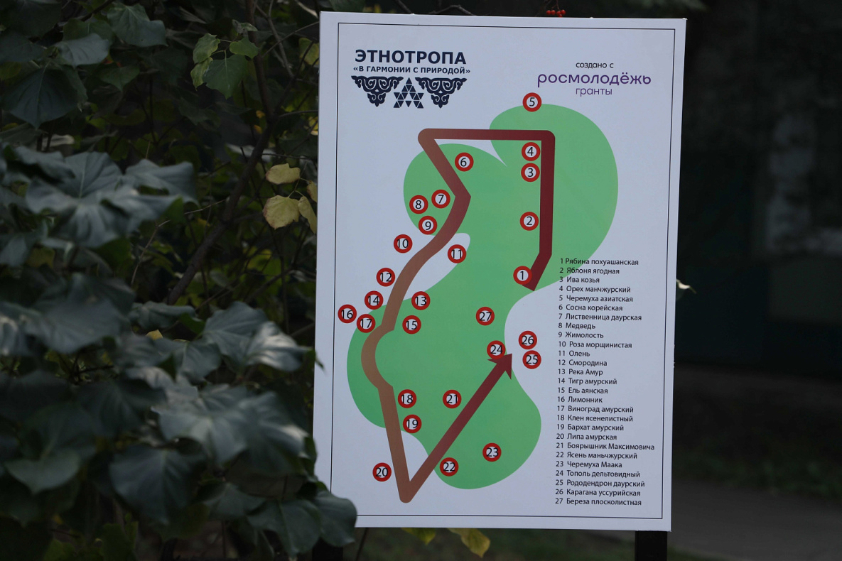 Проект реализован при поддержке гранта от «Росмолодежи» Фото: АмГПГУ В Комсомольске-на-Амуре на территории главного корпуса Амурского государственного педагогического университета создали этнотропу «В гармонии с природой».
