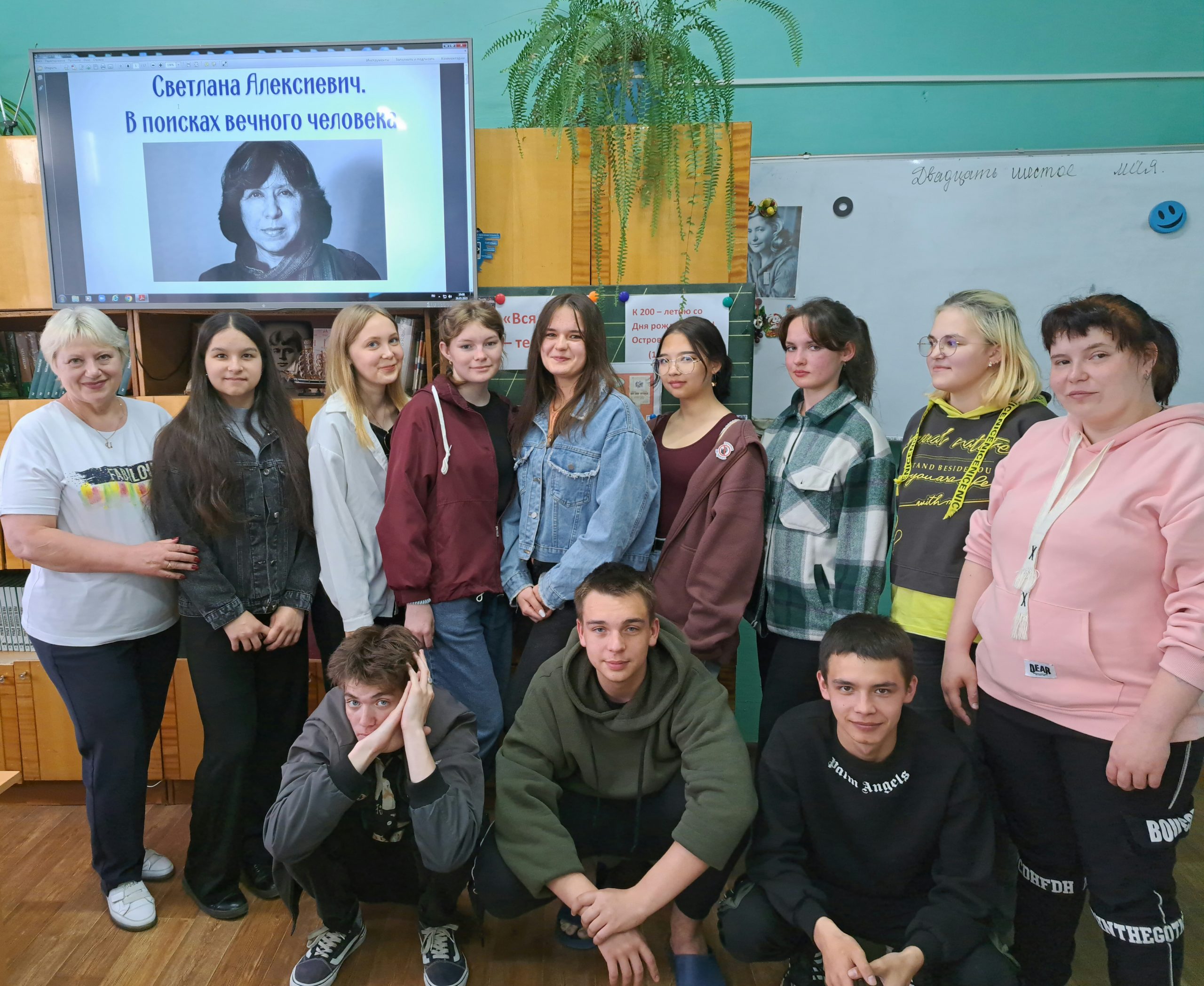 26 мая состоялось очередное заседание литературного клуба «Диалог», посвящённое 75– летию со Дня рождения Светланы Александровны Алексиевич — белорусской писательницы, журналистки, сценариста документальных фильмов. Наше мероприятие проходило в форме литературной гостиной «В поисках вечного человека».
