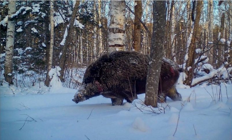 Вепрь попал в объектив фотоловушки в Хабаровском крае