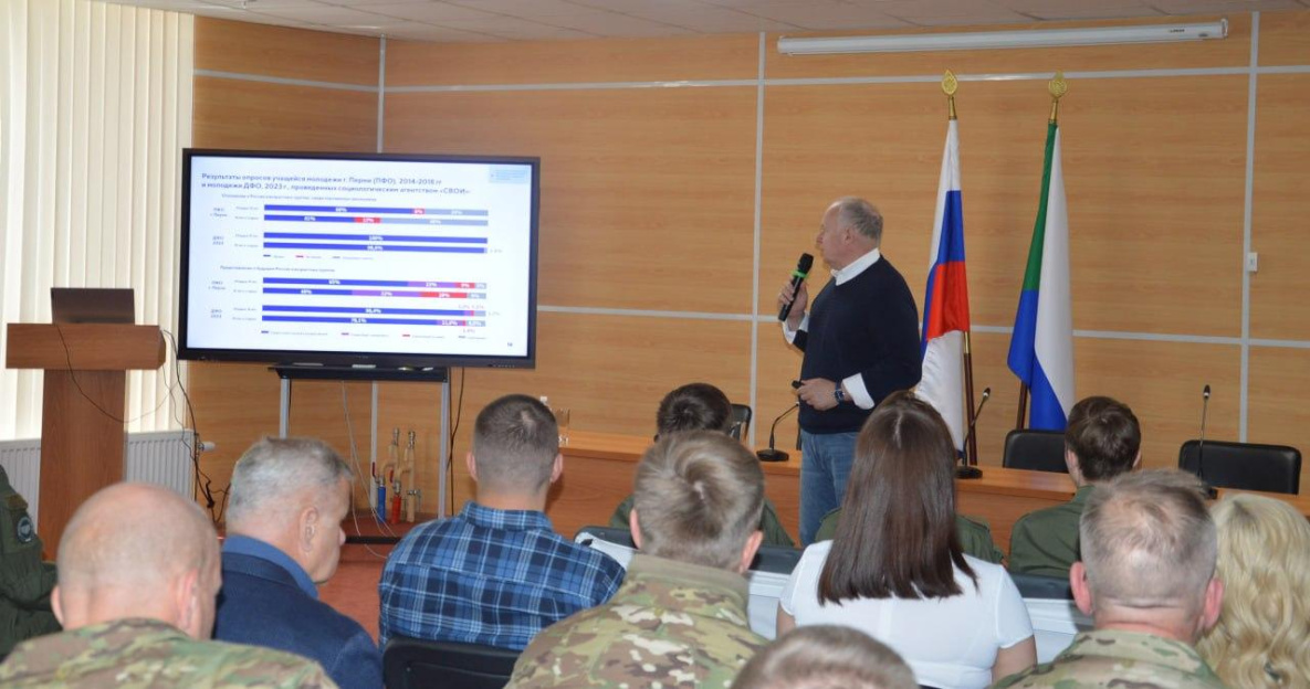 Заместитель полномочного представителя президента России в ДФО Григорий Куранов провел для хабаровчан лекцию о патриотизме, любви к Родине. Он также рассказал и о том, что происходит в мире с точки зрения современных людей, их взглядов и о том, почему не нужно поддаваться внешнему давлению, которое пытается изменить мышление людей в пользу других стран, сообщает ИА «Хабаровский край сегодня».
