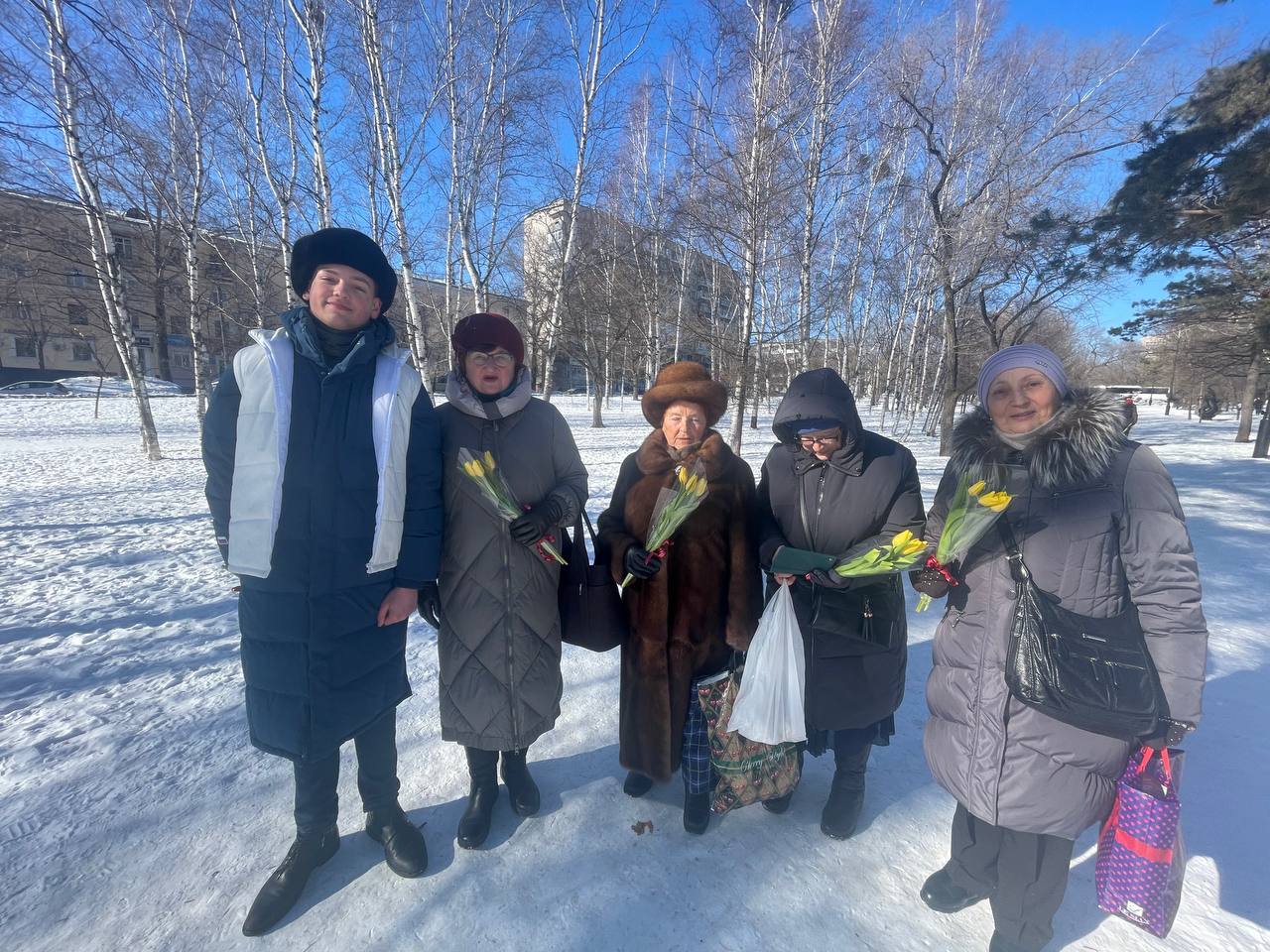 Хабаровские молодогвардейцы в Международный женский день подарили девушкам цветы