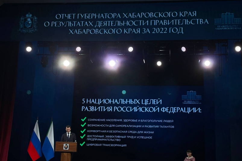 Также в докладе много внимания было уделено развитию социальной инфраструктуры. Так, была отмечена положительная динамика в части создания объектов здравоохранения. В частности было упомянуто открытие отделения трансплантации почки на базе Краевой клинической больницы №1 после 14-летнего перерыва, благодаря чему Хабаровский край стал одним из 36 субъектов РФ, где проводятся такие операции.