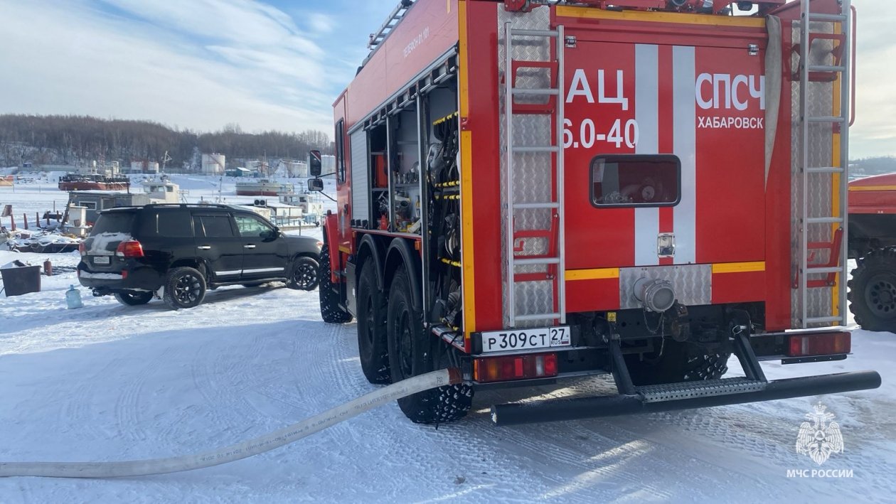 "В 12.18 (хбр) 8 января 2024 г. на центральный пульт пожарной связи Хабаровского пожарно-спасательного гарнизона поступило сообщение о возгорании на судне в затоне им. Кирова на острове Заячий.
