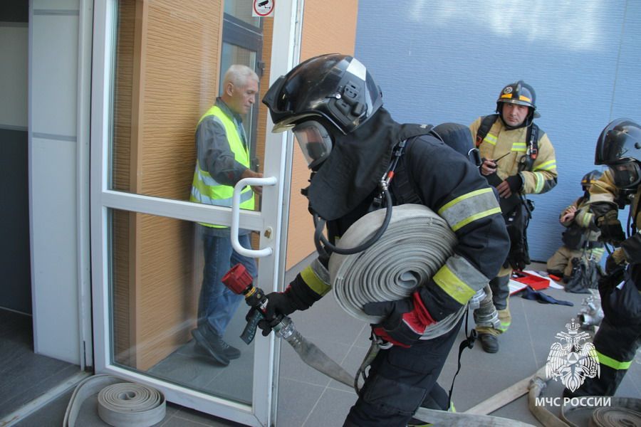 Первому прибывшему подразделению сотрудник охраны объекта доложил, что здание обесточено, все люди эвакуировались в безопасную зону, однако внутри, возможно, остались два человека. Огнеборцы незамедлительно приступили к работе. Включившись в дыхательные аппараты, они отправились на разведку. Следуя четким указаниям охранника, они быстро обнаружили помещение, где произошло «возгорание», там находились двое «пострадавших».