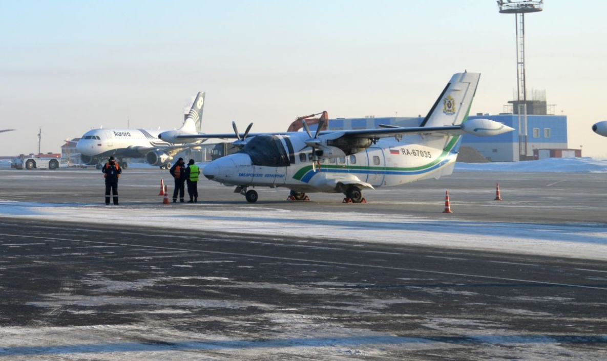 На борту Л-410 находились два пилота и один пассажир Фото: ИА «Хабаровский край сегодня» Самолёт Л-410 перевозчика «Хабаровские авиалинии»,