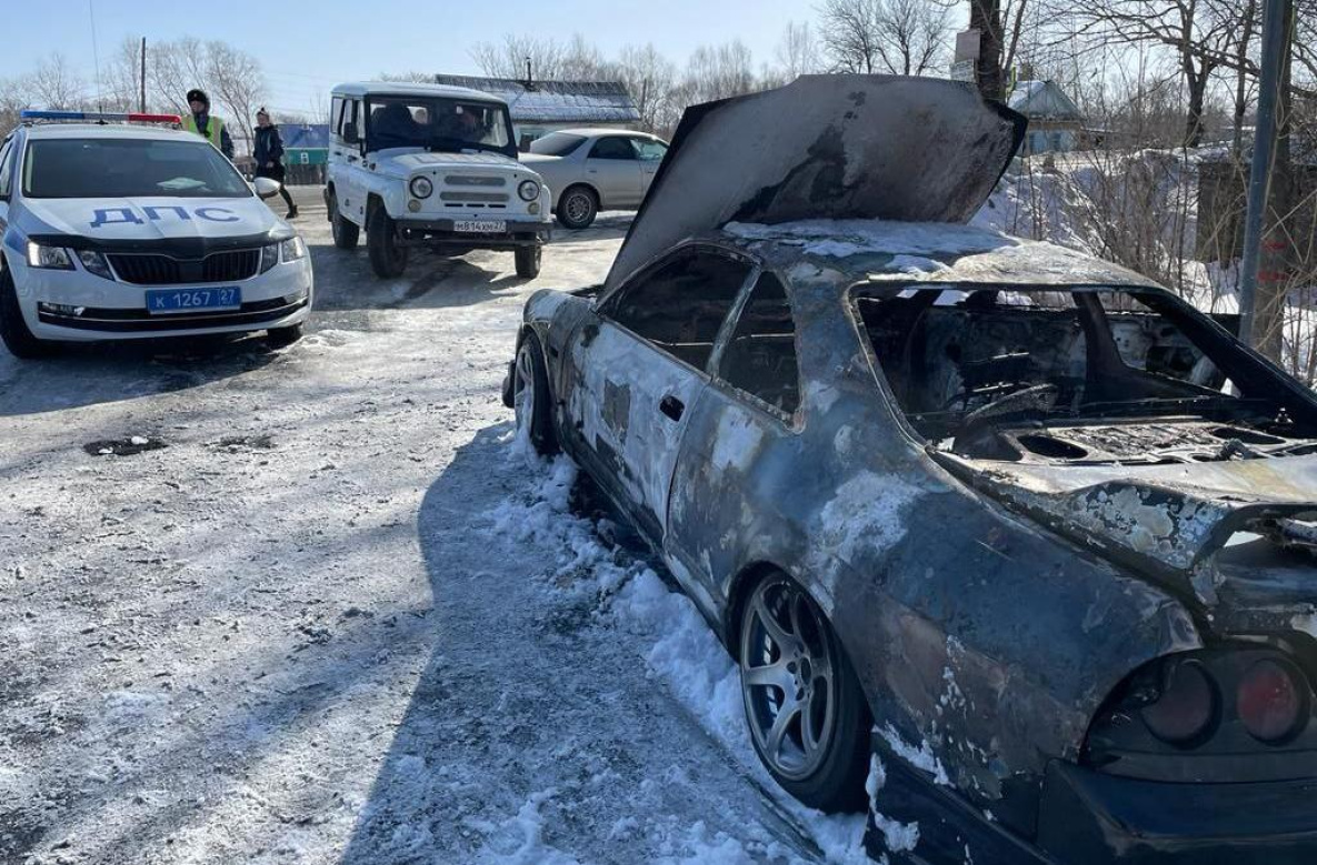 Днём ранее владелец автомобиля забрал его из автосервиса, где ему должны были починить электропроводку Фото: t.me/gibdd27 «Огненное шоу» наблюдали с утра воскресенья, 25 февраля,