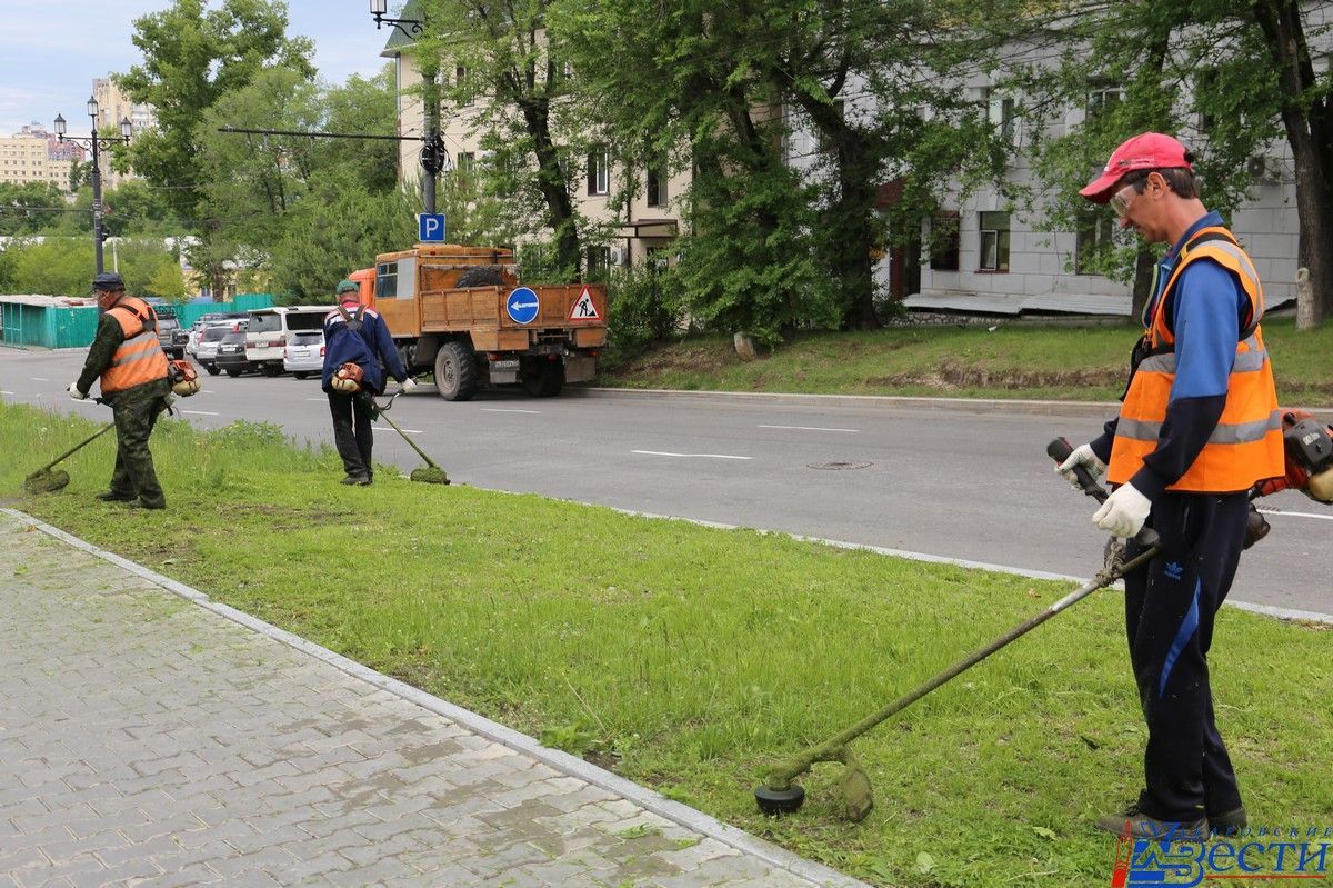 20 косарей «Горзеленстроя» работают на улицах Хабаровска