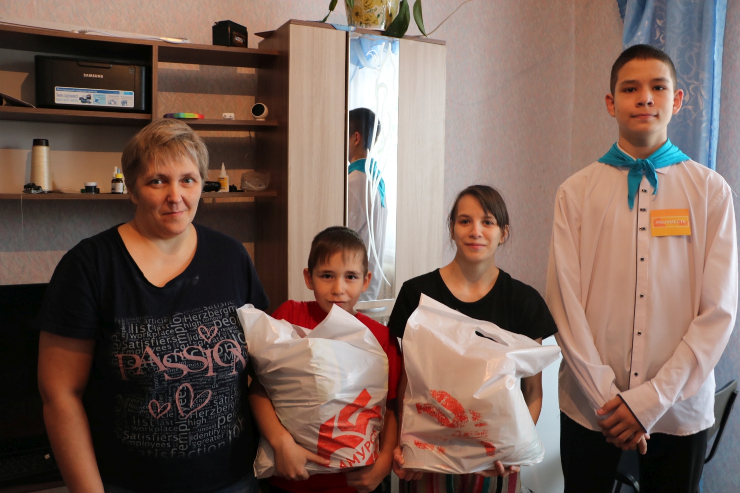 13 января специалисты администрации города Амурска совместно с ребятами из городского волонтёрского отряда "Взлёт" при поддержке предпринимателей города организовали вручение продуктовой корзины многодетной семье военнослужащего. Волонтеры познакомились с семьёй, предложили свою помощь с решением бытовых вопросов