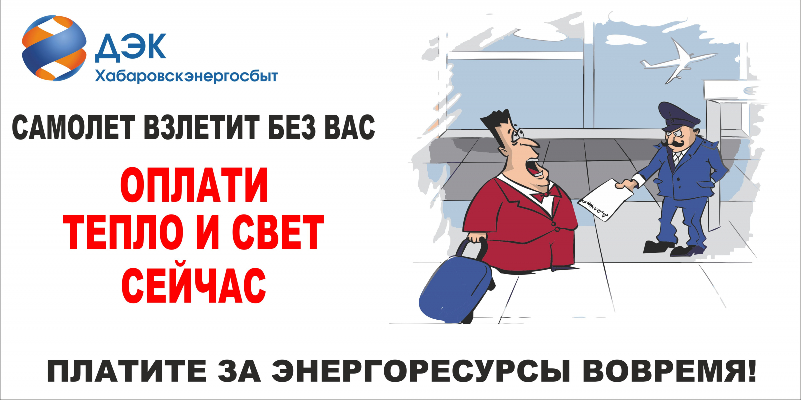 Хабаровскэнергосбыт (филиал ПАО «ДЭК») призывает своих клиентов заранее позаботиться о своевременной оплате счетов за потребленные энергоресурсы.