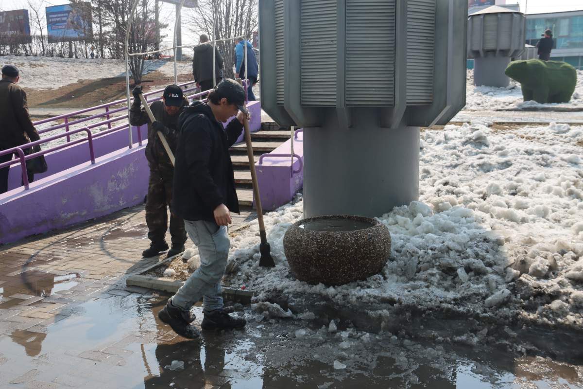 — На сегодняшний день на уборку от нашего торгового цента посменно выходят порядка 30 человек. Основная задача — это, естественно, рыхление снега, чтобы он поскорее растаял. В том числе наши сотрудники занимаются мытьем фасада, ликвидацией граффити, уборкой мелкого мусора, который остался после зимы. Мы располагаемся на красной линии, и общий облик города нам важен, — сказал управляющий торгового центра «Большая медведица» Павел Янц.