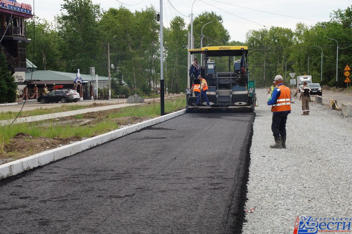 На улице Тихоокеанской в Хабаровске началась укладка асфальтобетона