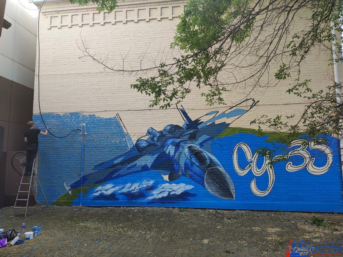 Работа уже близка к завершению, да и место выбрано подходящее: гордость дальневосточного самолетостроения красуется на торце здания военного комиссариата Центрального и Железнодорожного районов.