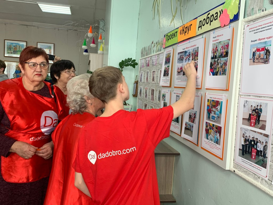 28 февраля в КГКОУ «Школа № 4» состоялось открытие Центра корпоративного волонтёрства «ДаДобро» в Амурском муниципальном районе. Напомним, что на Всероссийском конкурсе лучших практик работы со старшим поколением «Долголетие для всех» объединение «ДаДобро» с проектом «Круг добрых дел» занял 2 место из 796 участников. На грантовые средства в сумме 200 000 рублей были приобретены: платяной шкаф, 4 стола для проведения мастер-классов, стеллаж.