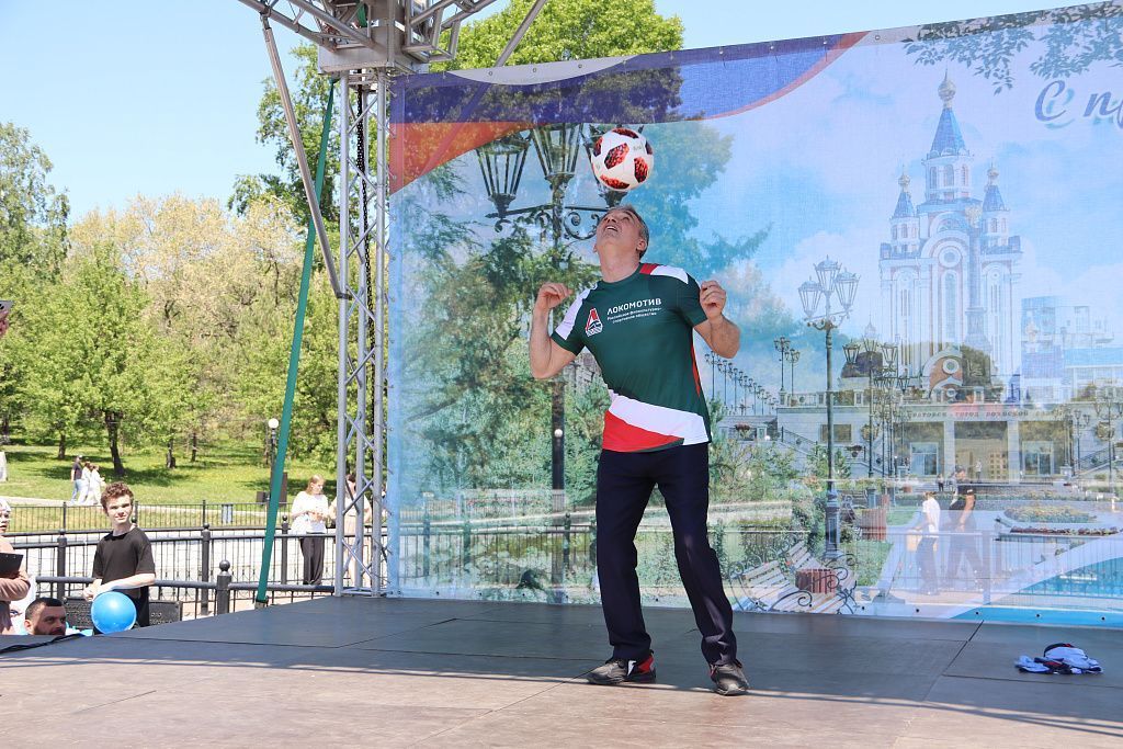 ― В честь дня рождения города сам сделал 166 подбивов мяча и теперь бросаю вызов любителям футбольной техники из Хабаровска, ― рассказал он.
