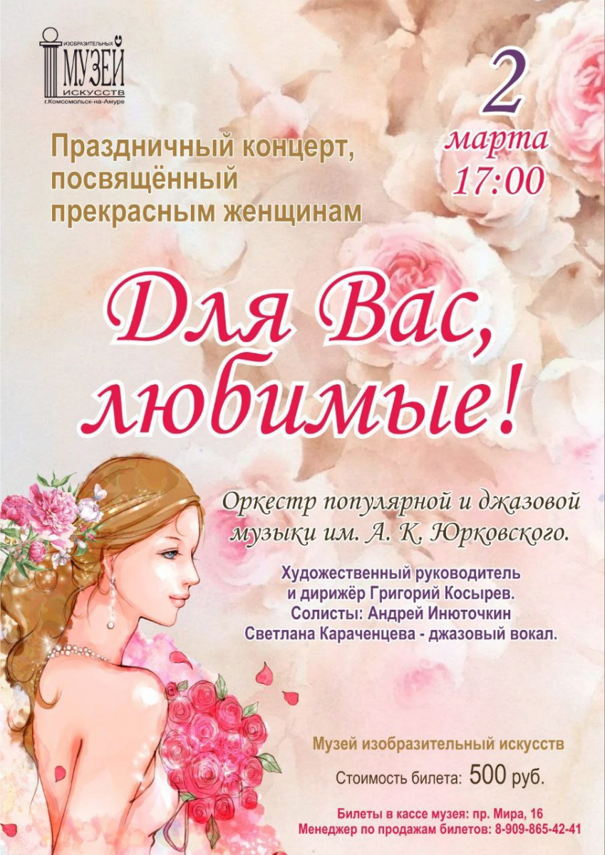 2 марта в 17:00 в Музее изобразительных искусств состоится праздничный концерт, посвящённый прекрасным женщинам «Для Вас, любимые!».