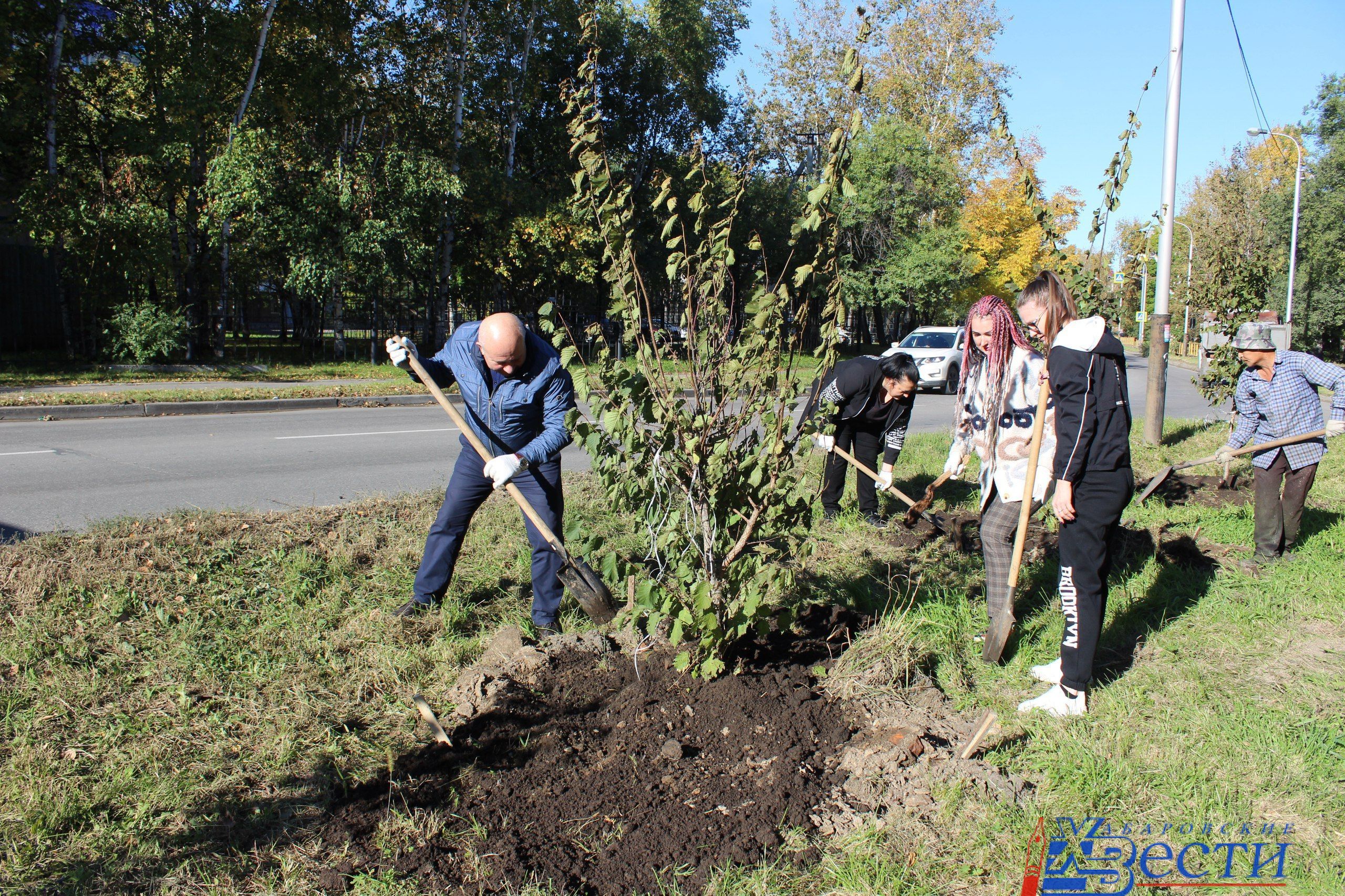 В высадке деревьев на улице Прогрессивной принял участие мэр Хабаровска Сергей Кравчук.