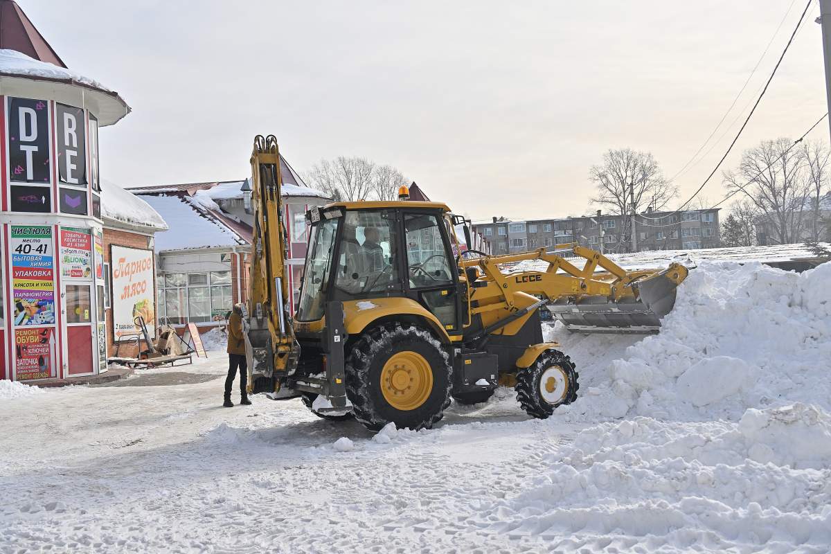 Уборка снега в Хабаровске продолжается.