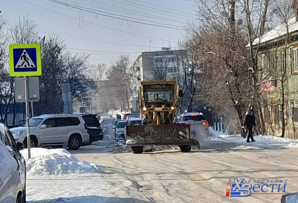 Уборка снега после циклона продолжается в Хабаровске