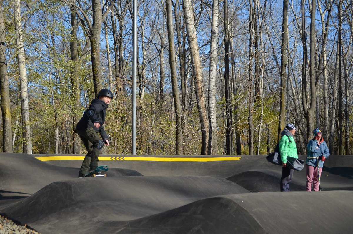 Новая площадка для молодёжи уникальна для города. Во-первых, в Комсомольске ещё ничего подобного для велоспорта не создавалось. Памп-трек - это специальная велосипедная трасса, представляющая собой чередование ям, кочек и контруклонов и не содержащая ровных участков.