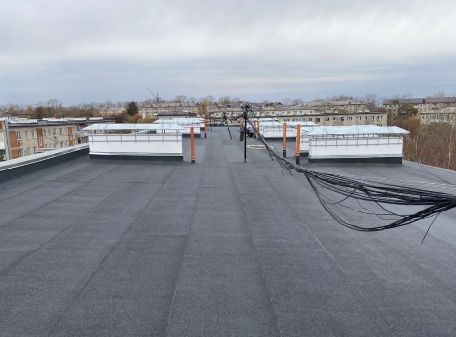 В ходе ремонта в первую очередь был выполнен демонтаж старых покрытий и устаревших элементов кровель, а затем монтаж нового кровельного полотна в два слоя. Для этого использовался современный отечественный материал техноэласт, гарантированный срок службы которого составляет 25 лет. Также в основной перечень работ вошли: установка зонтов над вентиляционными шахтами, прокладка фановых стояков и ремонт выходов на кровли.