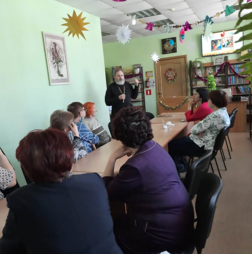 14 января настоятель храма святителя Николая Чудотворца протоиерей Андрей Колобов был приглашён на встречу с членами женского клуба «Хозяюшка». В Вяземской районной библиотеке состоялась беседа на тему: » От Рождества до Крещения».