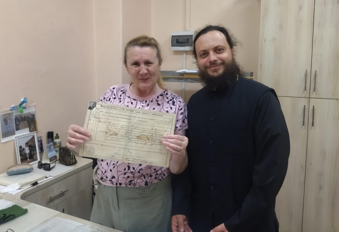 Документу 133 года, это выписка из метрической книги храма святителя Иннокентия Иркутского за 1891 год. Она подтверждает факт наличия актовой записи. В дореволюционные времена частные лица запрашивали такие справки для личной нужды, чтобы предъявить по месту требования. В нашем случае, чтобы получить паспорт уже в советское время – в 1935 году. В выписке содержалась вся информация из актовой записи, включая отметки и примечания. - Церковь до революции исполняла функции современных ЗАГСов, - рассказал отец Софроний . - Метрическая книга обычно состояла из трёх частей и имела записи о родившихся, венчавшихся и умерших. Вели книги священники или иные духовные лица, причём в двух экземплярах: один из них хранился при церкви, а второй отправляли в архив консистории. В этом документе содержится следующая информация: дата рождения и имя родившегося - Николай. Также есть графа со сведениями о его родителях, причём не только имя, но социальное положение, звание, и вероисповедание. В данном случае отец был из рядовых Хабаровского окружного артиллеристского склада. Следующая графа содержала информацию о восприемниках, поскольку крестные родители являются важными людьми в жизни православного человека. В выписке обязательно указывается имя священника, который совершал таинство крещения, а также место проведения Таинства. Крещение совершил священник Андрей Швецов. Документ был несколько потрепан от времени, поэтому настоятель обратился к друзьям епархии из Государственного архива Хабаровского края.Художник-реставратор Екатерина Давыдовна Миллер не раз приводила в порядок фотографии, книги или документы, которые передавала в ее мастерскую Хабаровская епархия.