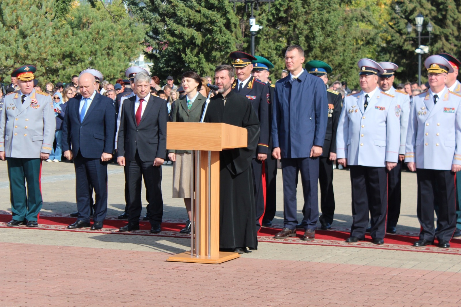 29 сентября 2023 года клирик Елизаветинского храма диакон Евгений Волков посетил торжественную присягу первокурсников Дальневосточного юридического института МВД России.
