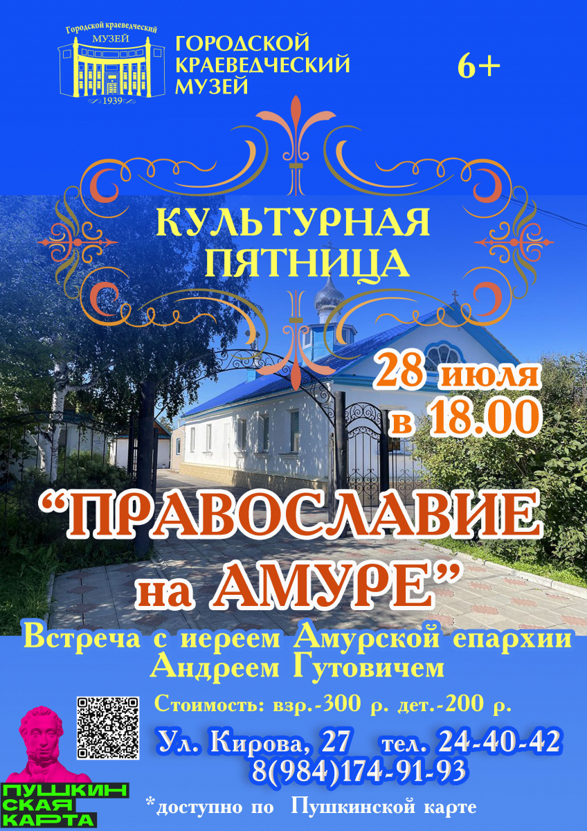 28 июля в 18:00, в День Крещения Руси, краеведческий музей приглашает комсомольчан на мероприятие «Православие на Амуре».