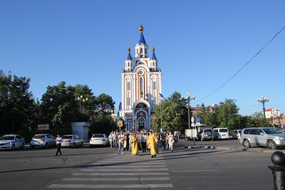 8 июля 2023 года, в день памяти святых благоверных князей Петра и Февронии Муромских, в Хабаровске прошел Крестный ход от Градо-Хабаровского собора Успения Божией Матери к памятнику святым покровителям семьи на набережной адмирала Невельского.
