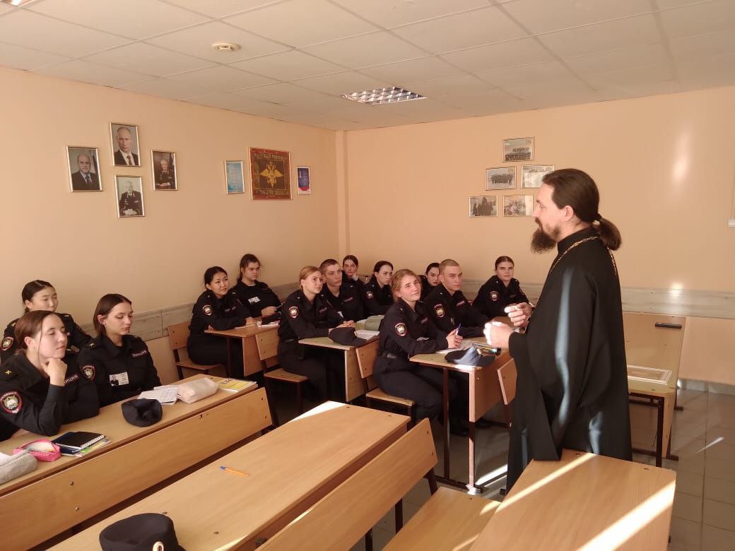 Руководитель Отдела образования Хабаровской епархии иерей Георгий Ибрагимов провёл для студентов Дальневосточного юридического института МВД России лекцию о Православии.