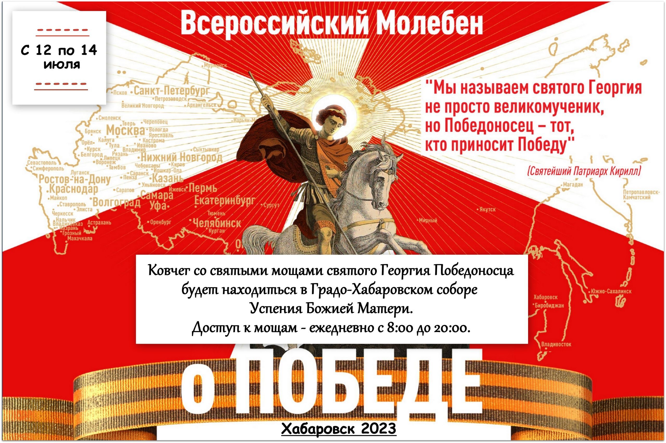 По благословению Святейшего Патриарха Московского и всея Руси Кирилла Хабаровск вошел в число ста городов, в которых пройдет Всероссийский молебен о Победе перед мощами Георгия Победоносца.