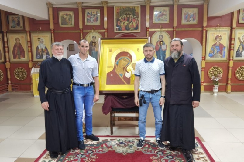 Из рук участника специальной военной операции на Украине строящемуся храму в честь святого великомученика Георгия Победоносца поселка Эльбан Амурского района Хабаровского края амбыла передана в дар писаная икона Божией Матери "Казанская". Образ Богородицы выполнил член Союза художников России Владимир Евтушенко, сообщает ИА AmurMedia со ссылкой на информационный отдел Хабаровской епархии.